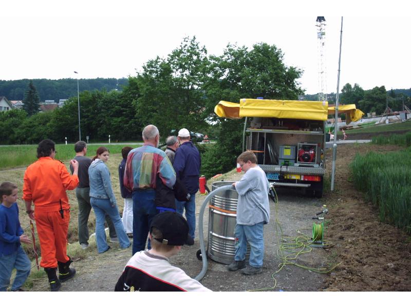 Das im Zusammenhang mit dem Quartierplan erstellte Abwassserpumpwerk Chüeweid konnte an diesem Tag besichtigt werden. Die Einweihung des Pumpwerks wurde mit einer Besichtigung des Regenrückhaltebeckens Alte Stationsstrasse verknüpft. Die Feuerwehr zeigte, wie bei einem Unfall eine Bachsperre erstellt wird. Die bei den Bauarbeiten beteiligten Firmen stellten Ihre Arbeit vor und eine Festwirtschaft rundete das Angebot ab.